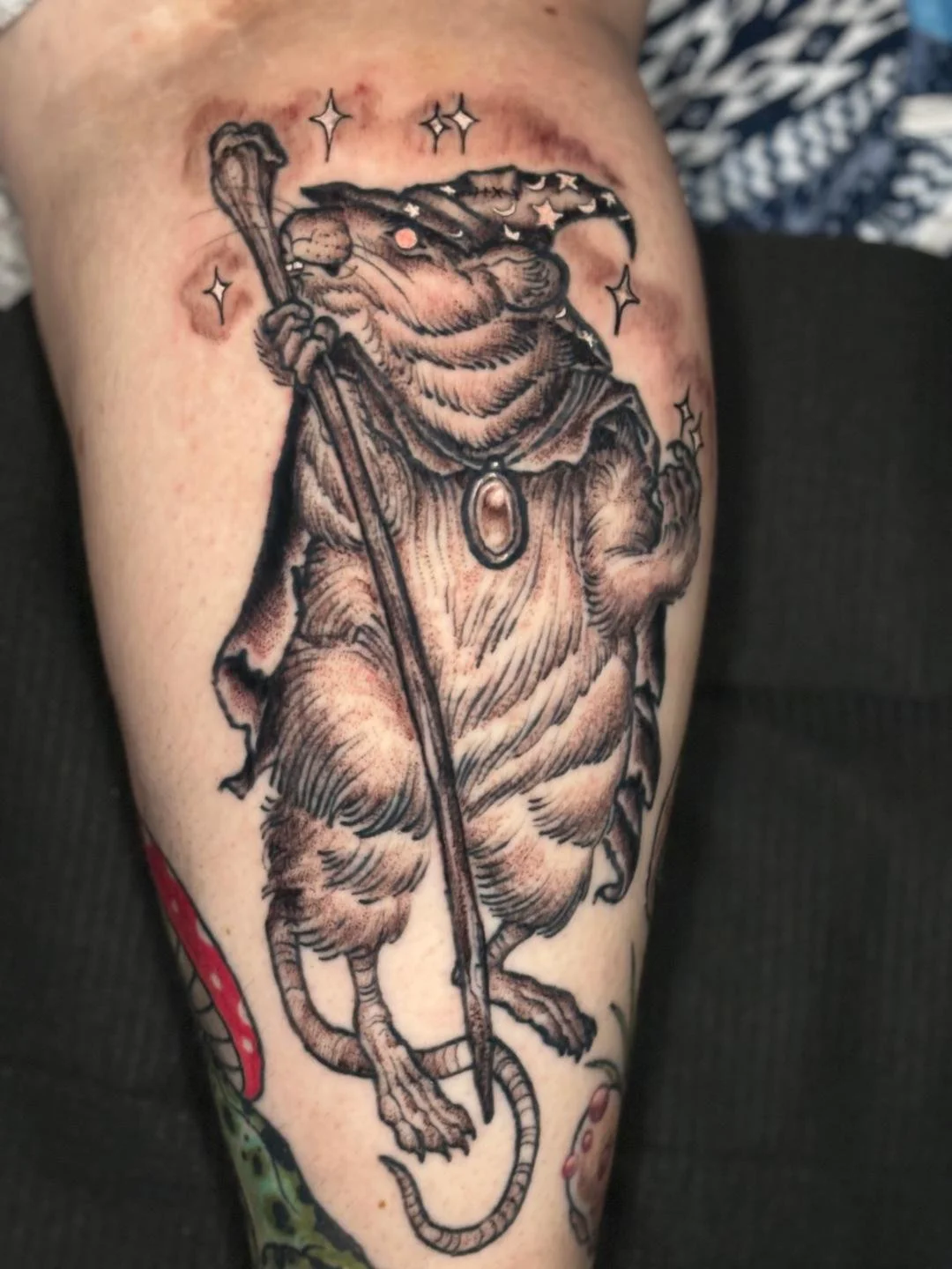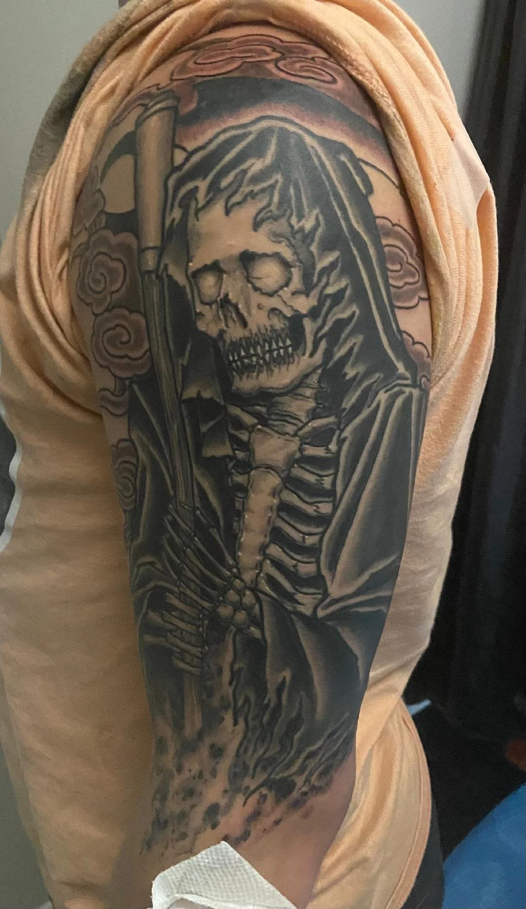 Mikey Fishhook enjoys offering custom Black and Gray tattoos made to last. Whether it is a delicate floral tattoo, a realistic portrait, or a dramatic St. Michael triumphing over evil; tattoos that are rendered in black and gray have a timeless look. As they age,they get a beautiful silky look that is unmatched. They can be fine line or even bold in design. We are all made of carbon, and so is black ink. I often draw portraits and figure drawings in charcoal or ink wash. So, to me black and gray tattooing embodies a subtle, descriptive and classy look that will always be relevant.