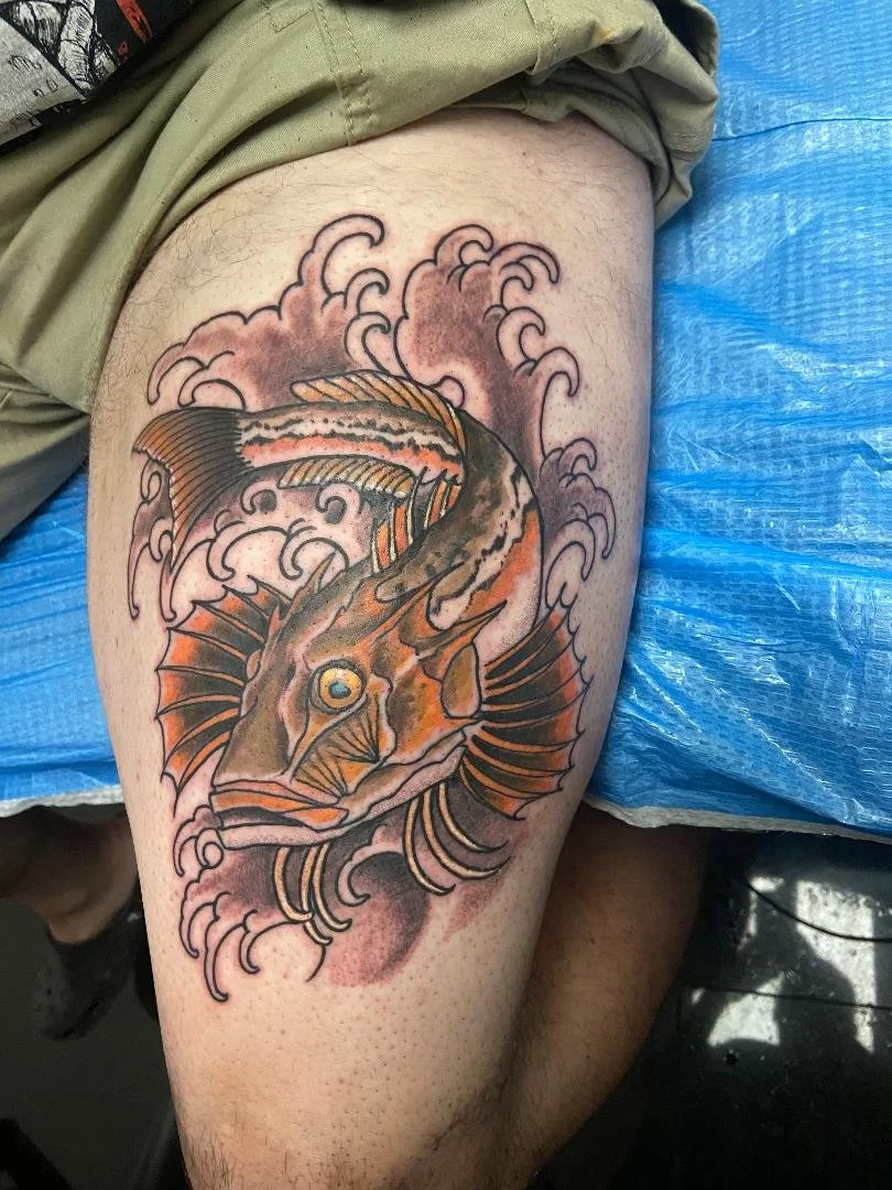 Mikey Fishhook enjoys offering custom Japanese inspired tattoos that are bold, detailed and made to last. One of most often said phrases in a tattoo shop is: “I want a tattoo that means something”. Look no further than Japanese style Tattooing. Each element must be carefully planned and thought out to truly represent the client’s idea and come together to create a design that moves symbiotically with the body party it is tattooed on.
